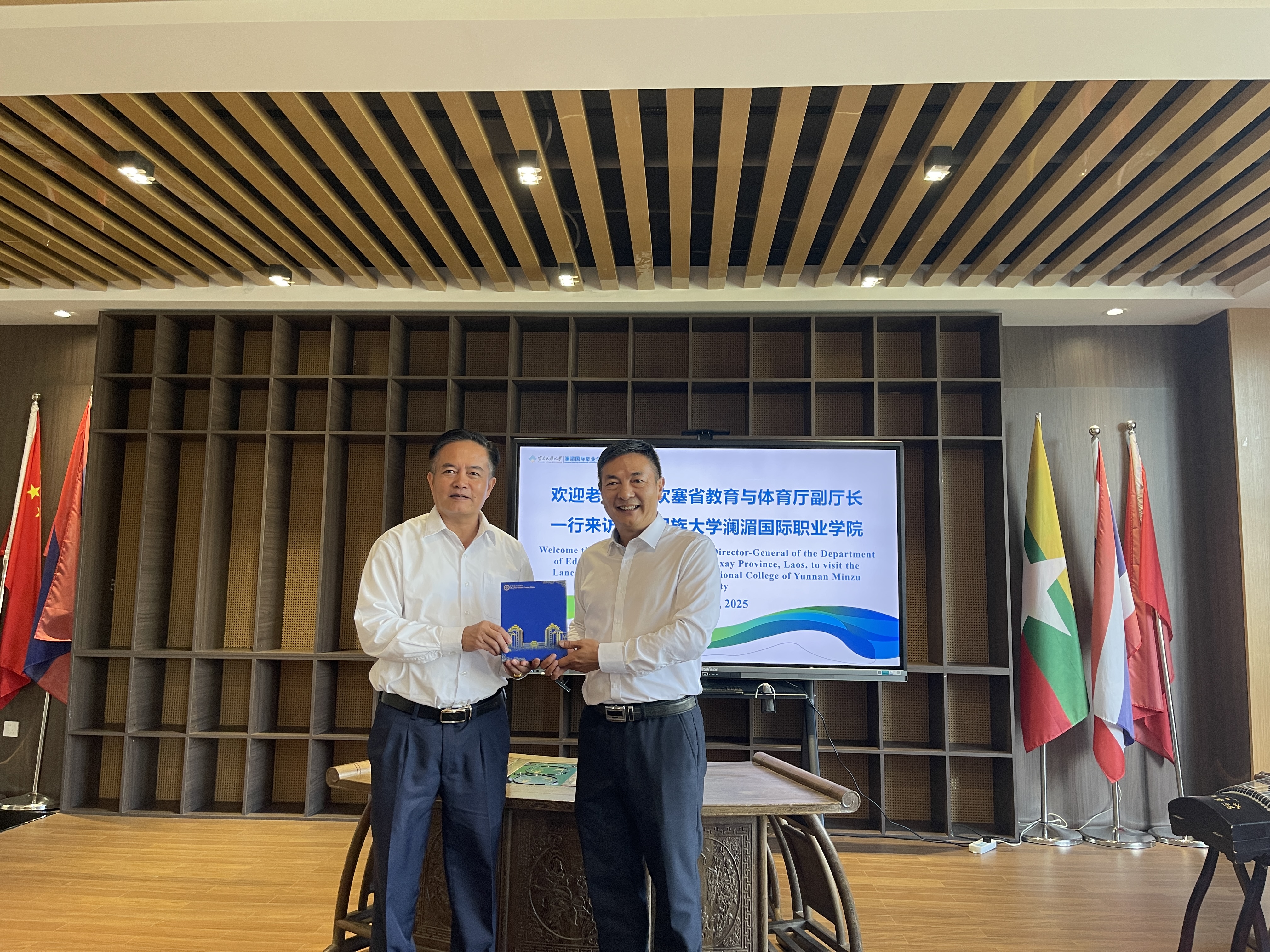 邵维庆介绍了学校的基本情况以及与老挝教育交流合作现状。他表示,民大与波里坎塞省虽隔山水,但教育合作意愿同频,希望以此次访问为起点,把“第一公里”走成“常来常往”。
